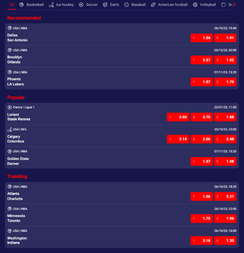 Highlights widget (Bet Recommendation) is a front-end widget that provides a personalized betting experience. It displays a list of events based on event popularity and the punters betting history via a user friendly interface. It simplifies the process of finding the right bet from the myriad of possible choices and boosts betting volume for upcoming and live events.
