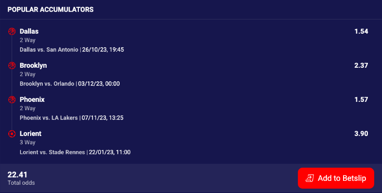My Combo widget is a front-end widget that provides a personalized betting experience and a simplified way to discover and place multi bets. The main feature of the widget is the user interface that allows punters to quickly add multi bet combinations to the bet slip, find new ones or create their own on the fly.